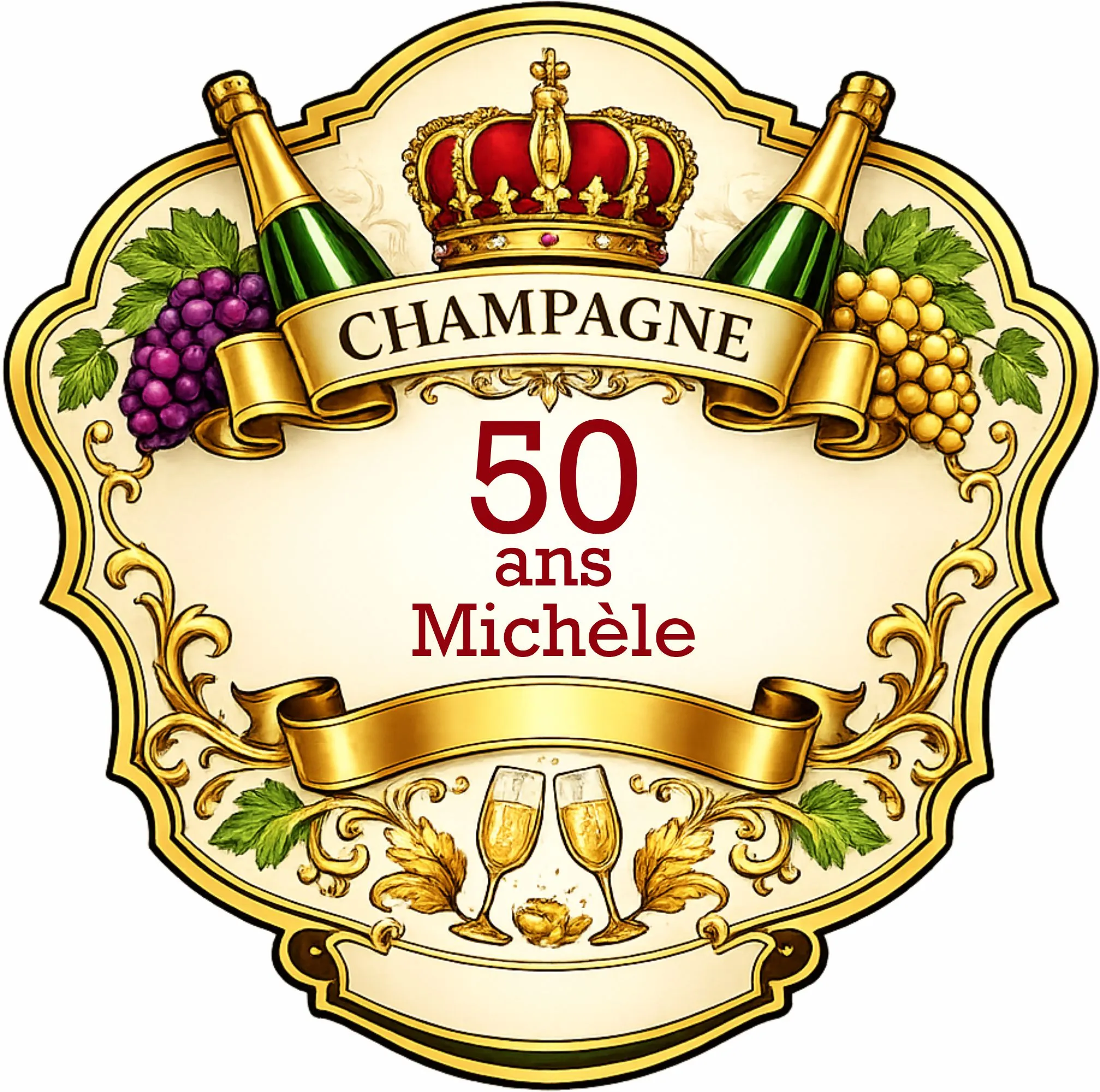 Mots-clés : étiquette anniversaire champagne, étiquette bouteille personnalisée, étiquette vinyle champagne, décoration anniversaire bouteille, impression étiquette personnalisée.