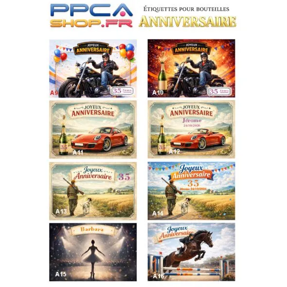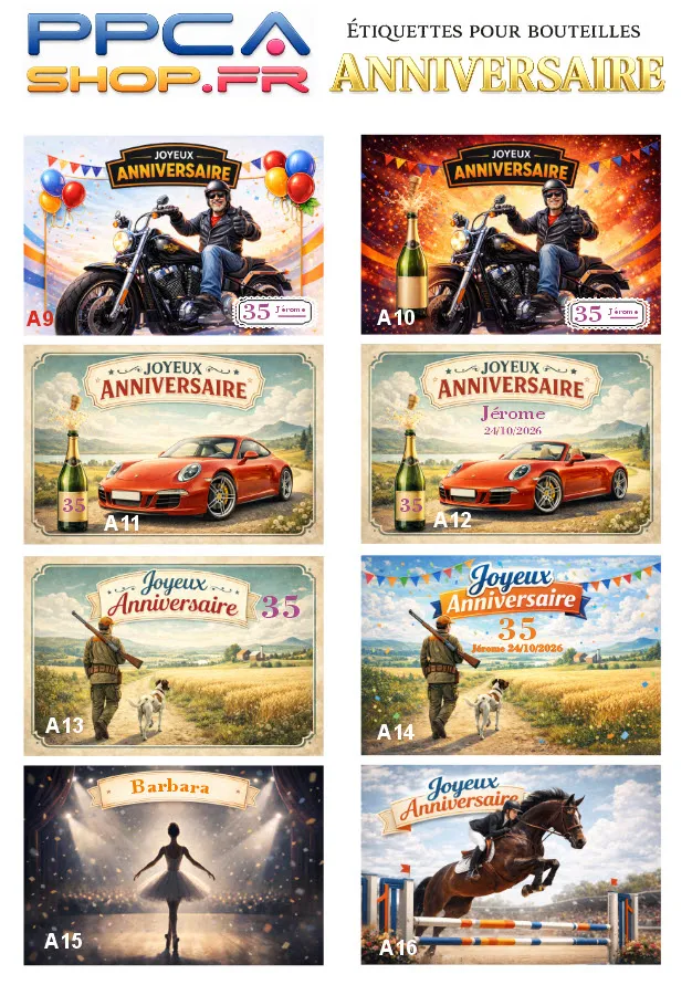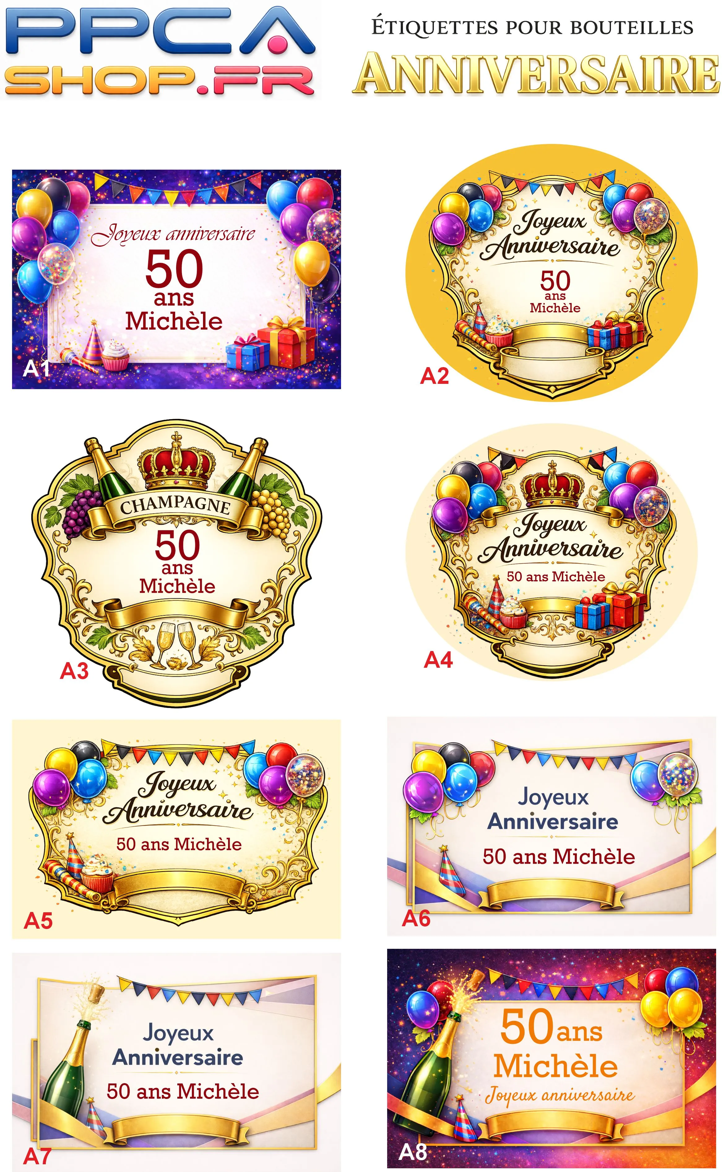 Décorez vos bouteilles de champagne avec une étiquette anniversaire personnalisée. Nos étiquettes sont imprimées en quadri sur vinyle, résistantes à l’eau et conçues pour offrir un rendu élégant et durable, idéal pour fêter un anniversaire marquant.