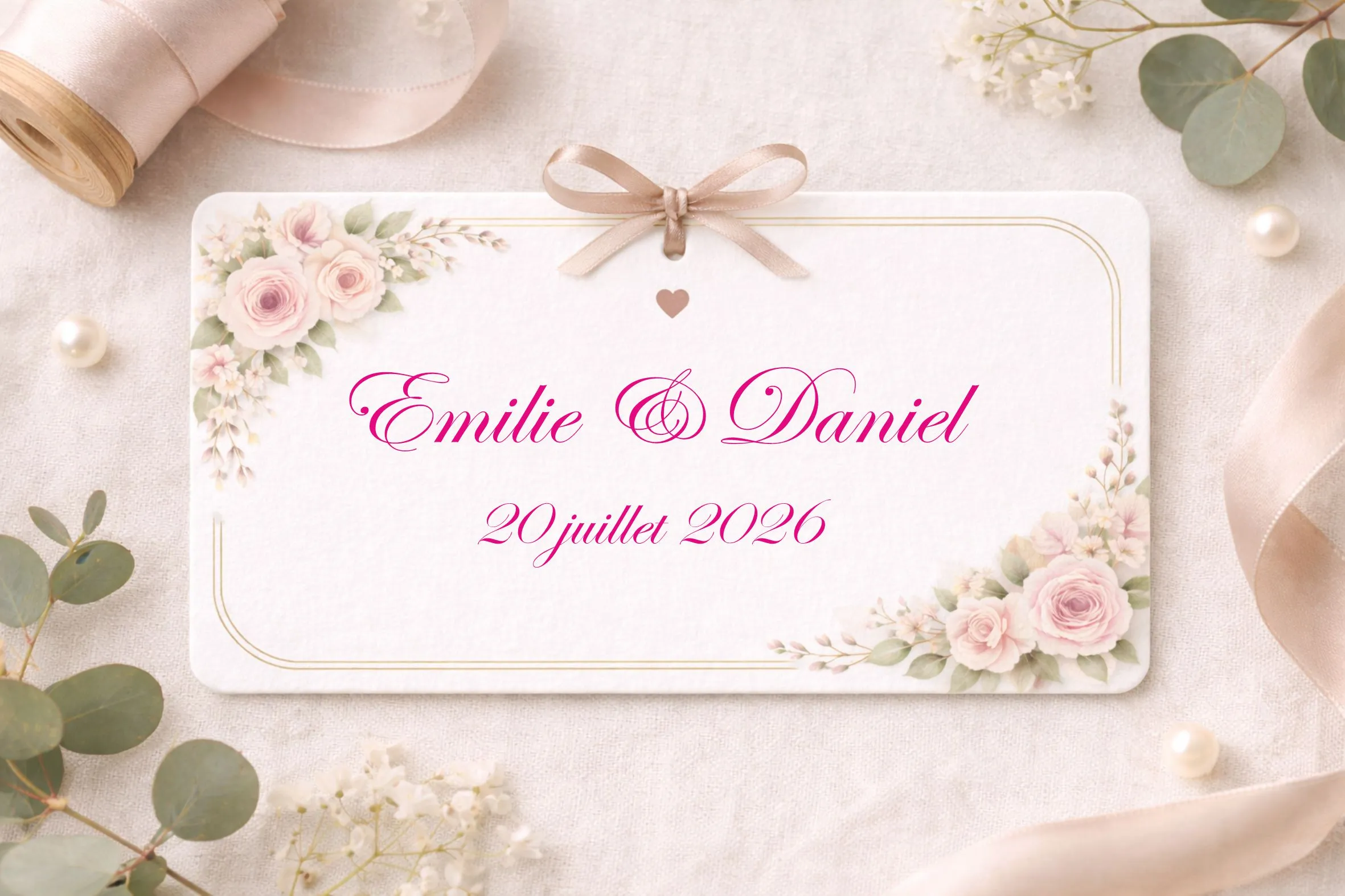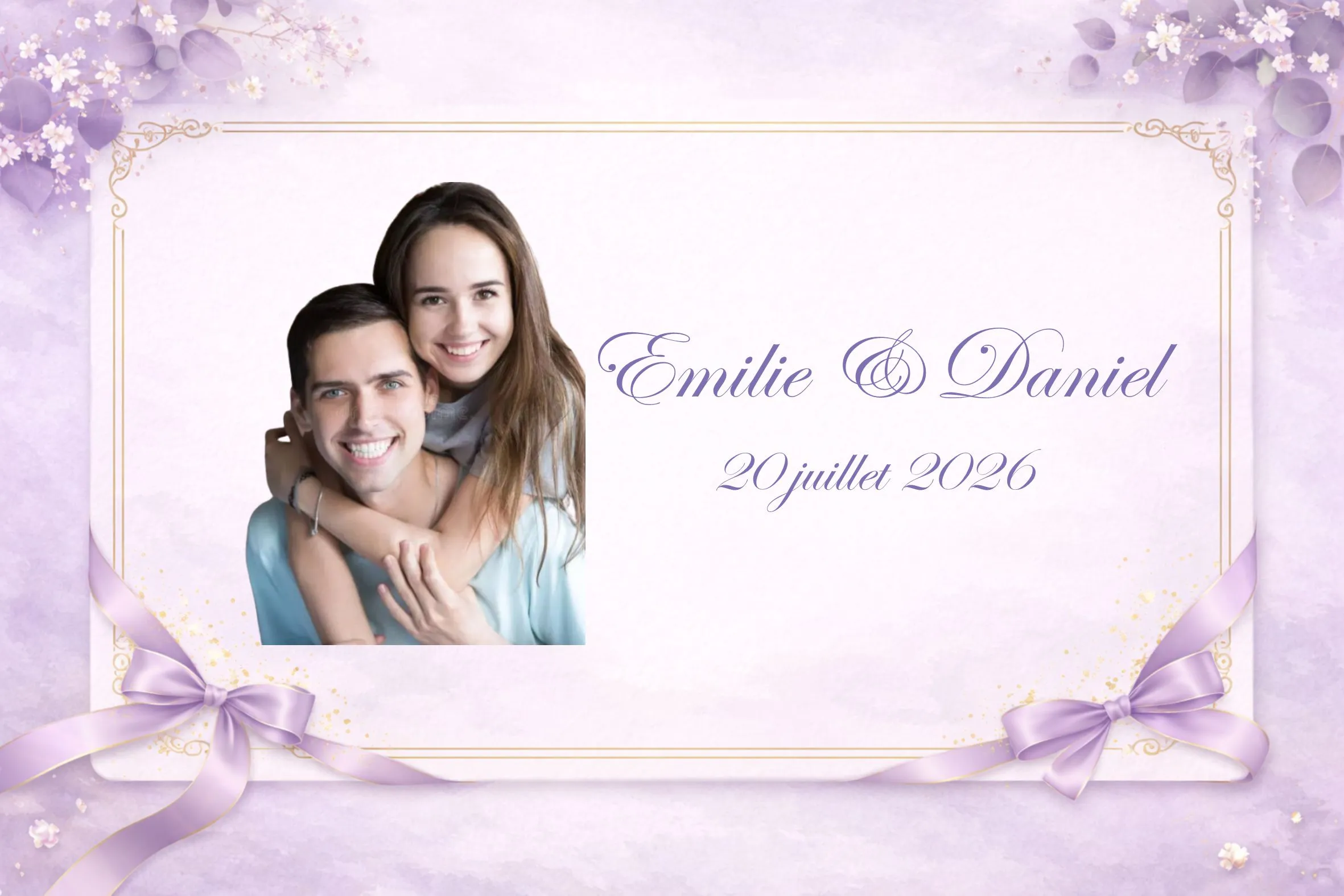 - Renseignez votre texte personnalisé (prénoms, date, message)