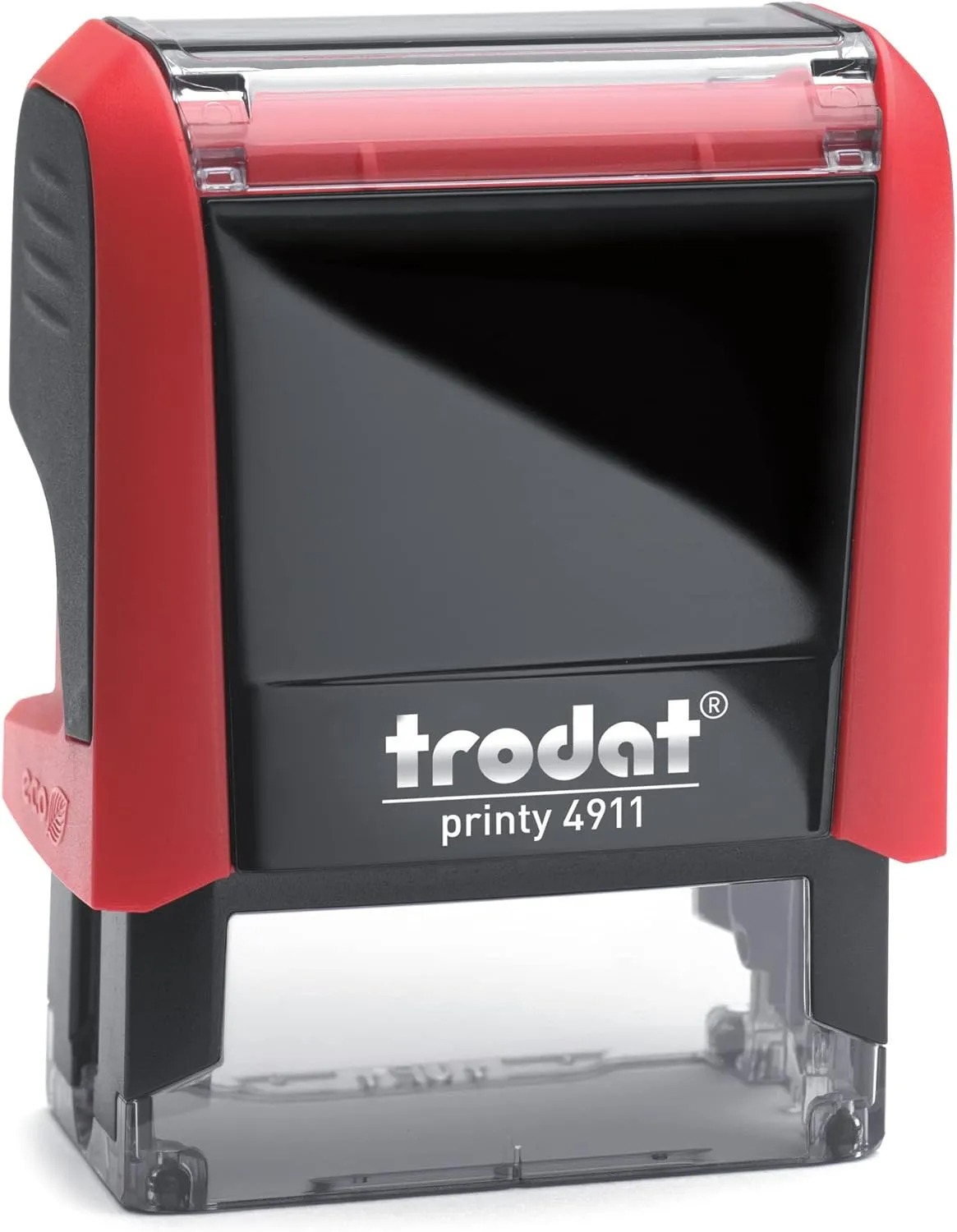 Le Trodat Printy 4911 offre une empreinte de 38 × 14 mm pour reproduire jusqu'à 3 lignes de texte — idéal pour un nom, une fonction et un numéro de téléphone, ou toute mention courte en 3 lignes.