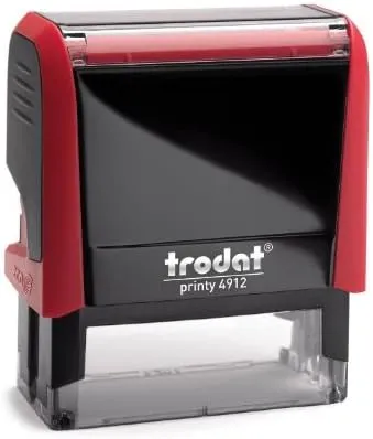 Le Trodat Printy 4912 offre une empreinte de 47 × 18 mm pour reproduire jusqu'à 5 lignes de texte — idéal pour les coordonnées professionnelles complètes : nom, fonction, adresse, téléphone et e-mail.
