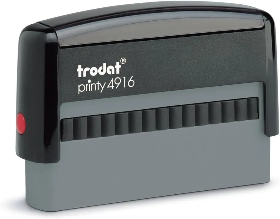 Le Trodat Printy 4916 offre une empreinte de 70 × 10 mm pour reproduire jusqu'à 2 lignes de texte. Son format très allongé est spécialement conçu pour s'adapter à la ligne réservée au tampon sur les chèques bancaires.